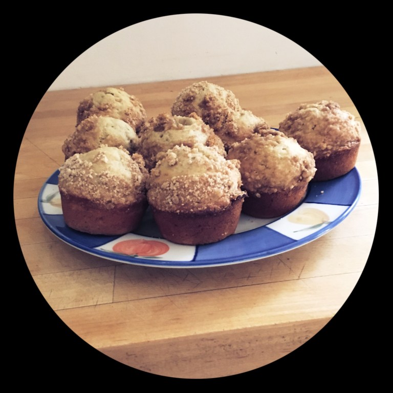 Add the batter to a greased muffin pan. Sprinkle the cinnamon mixture on top of each muffin. Bake at 375 for 18 to 20 minutes.